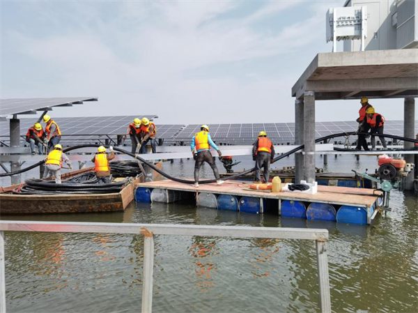 通威蚌埠“漁光一體”光伏電站電纜敷設。