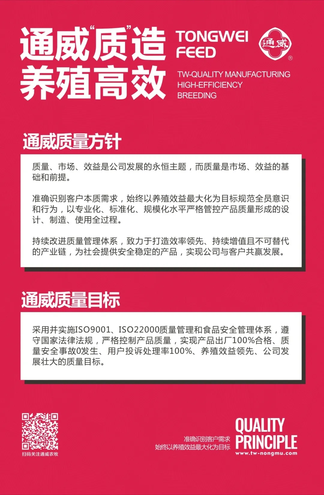 工業重慶 “質”造通威 中國飼料工業展覽會創始于1996年 成為國內飼料行業 規模最大、專業化程度最高 影響力傳播力最強的第一品牌展覽會 連續多年被評為5A級專業展 在2021年全面建成小康社會的重要時間節點 展會以“為產業賦能、為生活添彩”為主題 倡導行業不斷提升產業質量效益和競爭力 打造產出高效、產品安全、資源節約、 環境友好、調控有效的高質量發展新格局 更好地滿足人民群眾多元化的消費需求 時間:4.15-4.20,18日開幕 地點:重慶國際博覽中心 通威展館:N7大型飼料企業展區S31特裝展位 通威主題:通威“質”造,養殖高效 展出模塊:養殖模式、飼料產品、動保產品、養殖設備、標準化生產 支持單位:農業農村部畜牧獸醫局、重慶市農業農村委員會 主辦單位:中國飼料工業協會、全國畜牧總站