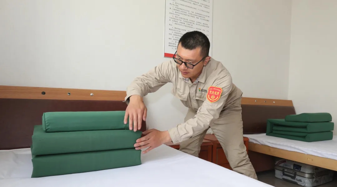 走進基地,身著迷彩服的運維人員正在進行軍事訓練,他們步伐鏗鏘有力,各類動作整齊劃一。訓練間隙,專項傳播小組走進宿舍,了解運維人員工作生活情況,室內場景讓人眼前一亮:干凈整潔的床鋪,疊成“豆腐塊”的被子棱角分明,各類生活用品整齊擺放,井然有序,儼然成了一座標準的“軍營”。通威龍袍“漁光一體”光伏電站站長趙振告訴專項傳播小組,通過軍事化管理訓練,極大提升了全體運維人員的精氣神,錘煉了令行禁止的優良作風,更增強了團隊協作精神,對五年規劃目標的實現,大家信心百倍、干勁十足。