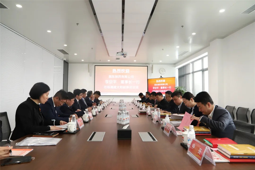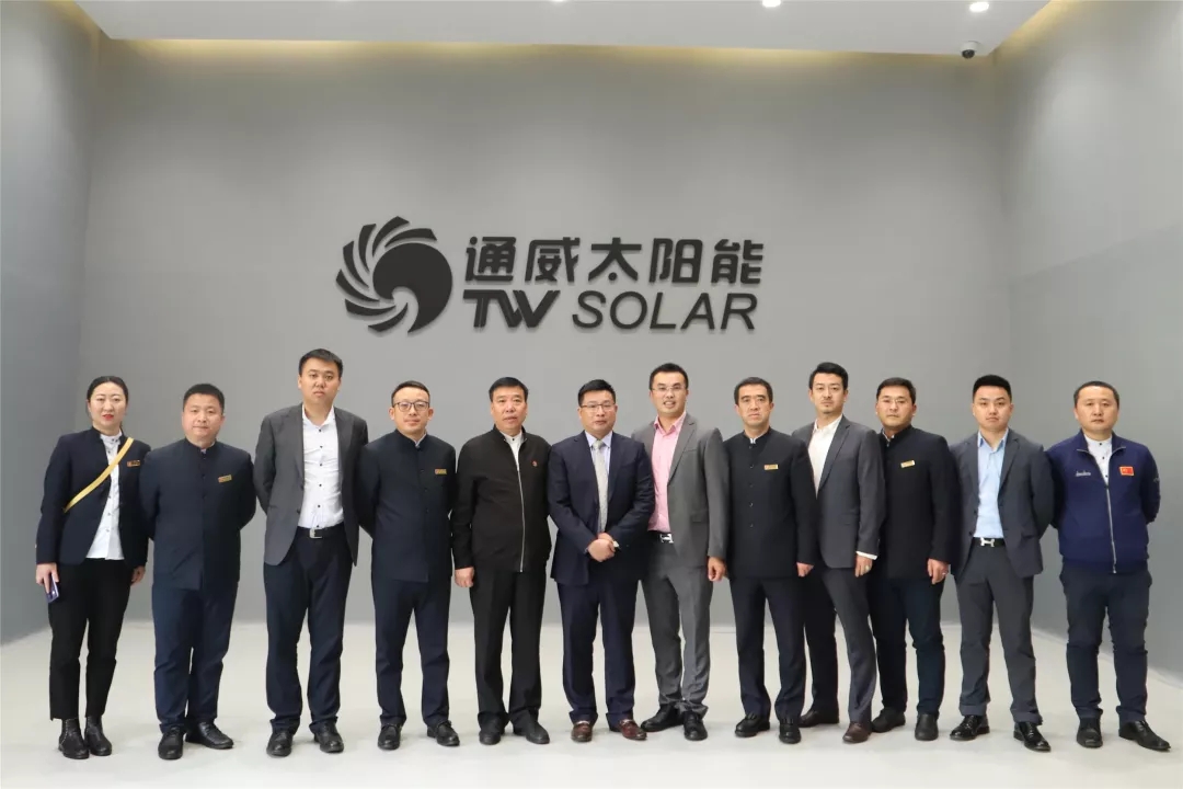 3月16日,山西振東健康產業集團有限公司董事長李安平一行蒞臨通威太陽能眉山基地交流,通威太陽能首席運營官蕭圣義熱情接待并座談,通威太陽能副總經理楊文棟、財務總監宋梟、光伏研究院院長劉正新、眉山基地總經理助理蔣衛朋協相關部門負責人陪同接待。