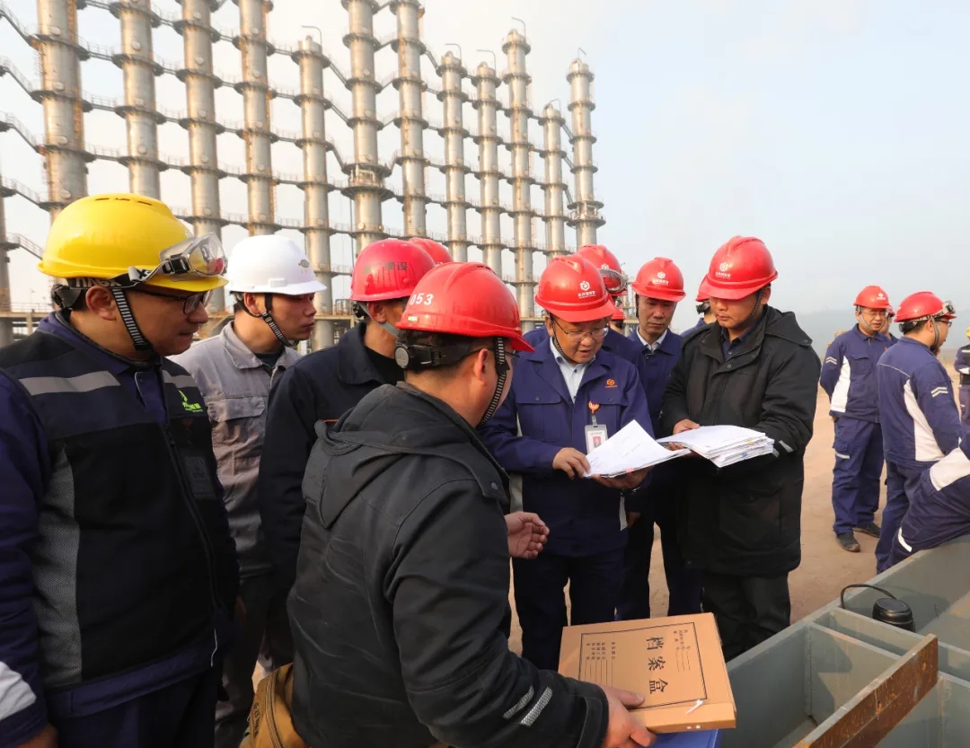永祥股份總經理兼永祥新能源總經理李斌帶隊逐一檢查二期建設現場每個細節