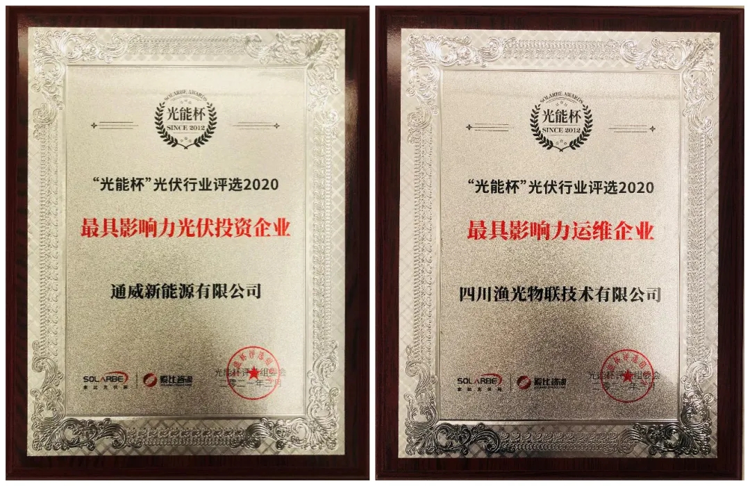 通威新能源、漁光物聯分別榮獲“最具影響力光伏投資企業”“最具影響力運維企業”