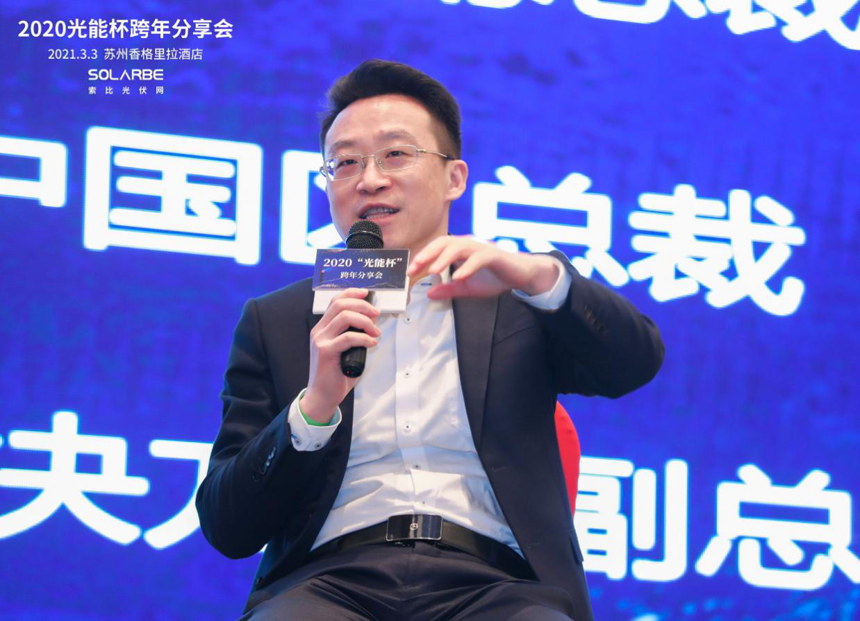 此次“光能杯”分別設有“跨年分享會”、“光伏高端領袖對話”以及年度頒獎環節。在光伏高端領袖對話環節,陳總詳細介紹了通威在光伏領域上游硅料,中游電池片、組件,下游“漁光一體”電站的發展,并以分享見解、凝聚共識,共促行業健康發展為方向,分享了對行業政策、市場趨勢、產業升級等熱點、難點問題的思考與見解。