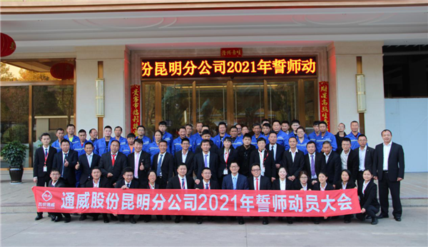 又是一年春來到,千帆競渡看今朝。在這個春和景明的美好時節,2月19日昆明分公司舉行了2021年誓師動員大會,公司總經理王朝才及昆明分公司銷售、生產、后勤團隊全體出席大會。