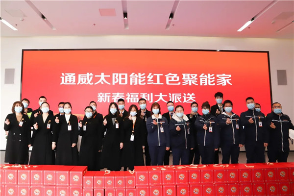 新春佳節來臨之際,為感謝全體員工在過去一年中的辛勤付出與貢獻,進一步提升員工歸屬感與幸福感,2月4-5日,通威太陽能合肥、雙流、眉山、金堂基地先后開展新春福利大派送活動,為全體員工及親屬送去了節日的問候和祝福。