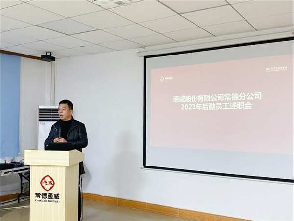 2021年1月29日下午1:30,常德通威召開2020年后勤員工述職會議,常德公司總經(jīng)理馬恩懷、內務總經(jīng)理袁曉萌、總經(jīng)理助理許小波以及公司各部門負責人出席本次會議并擔任評委,后勤崗位員工14人參與本次述職。