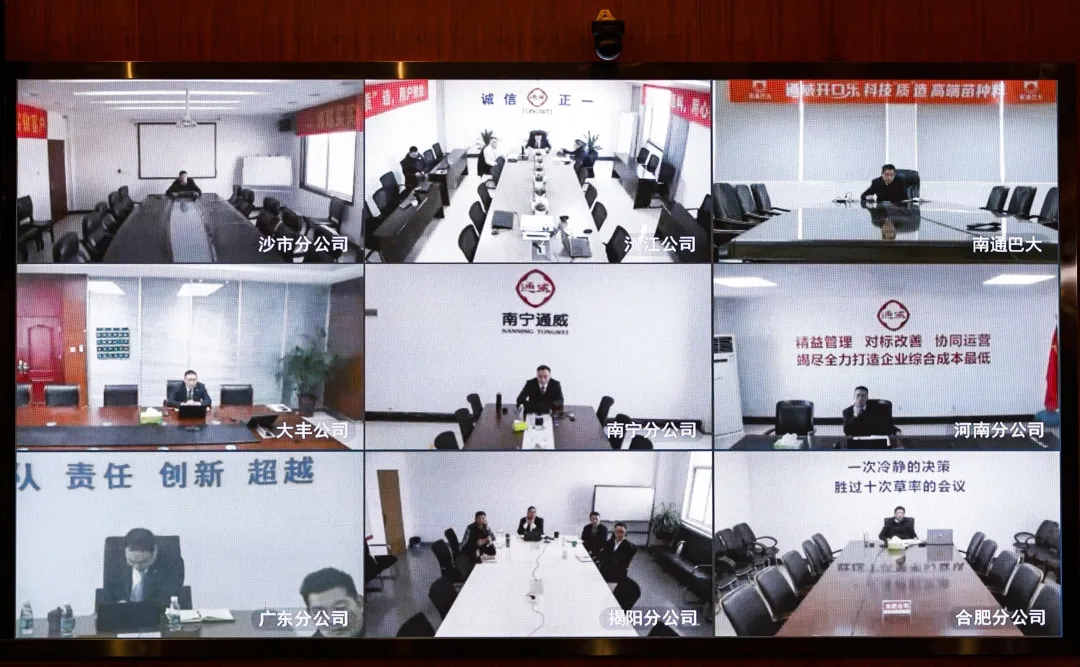 各片區通過視頻參會 面對疫情及復雜多變的國內外經濟形勢,2020年通威農牧全體干部員工積極轉變觀念、強化執行,認真學習和踐行質量方針,全力推進標準化和滿產滿銷項目落地,取得了良好業績,為來年生產經營再上臺階打下堅實基礎。會上,16位片區及相關板塊負責人作年度述職匯報,回顧2020年總體經營情況,結合片區五年規劃對各公司進行重新定位,并闡述行之有效的經營目標達成舉措。新的一年,各片區將繼續在通威質量方針的指引下,以養殖效益最大化為目標,以標準化和滿產滿銷為抓手,力爭實現量利雙增。 通威股份總裁郭異忠現場點評 隨后,郭總對各片區負責人的述職情況進行點評,感謝大家一年來付出的努力和汗水,并對銷量表現亮眼的片區和實現滿產滿銷的優秀公司予以充分肯定。郭總表示,各片區已經充分領會到管理總部提出的變革要求,并積極踐行和落實,很高興看到大家以高目標為牽引,經營管理措施更有力,團隊士氣和信心更足,相較以往取得了顯著進步。2020年,各公司著力推進產品聚焦和市場聚焦,產品不斷優化,用戶增效不斷加強。企業文化建設從上至下提升了員工的精氣神,并持續開展標準化建設和滿產滿銷項目落地,一系列工作成效值得肯定。質量方針落地,是需要長期堅持的工作,大家必須堅定不移地持續推進。“制度必執行,承諾必兌現,說到必做到”是大家共同作出的莊嚴承諾,完成任務是唯一目標,打勝仗是唯一使命,希望大家練好內功,將信心轉化成業績,圍繞高目標一起努力,讓農牧板塊士氣大增! 劉漢元主席作重要指示 會議最后,劉漢元主席作重要指示,并表示,在國內外形勢復雜多變的2020年,各片區維持住量利水平難能可貴,感謝片區負責人帶領各公司干部員工付出的努力。1月以來,七家公司相繼取得開門紅,在實現滿產滿銷和創造歷史新高的道路上邁出了新的步伐,讓我們對大家未來的工作充滿了信心。在質量方針深層次實踐的過程中,需要我們站在用戶角度思考,真正落實養殖效益最大化的根本目標,需要我們和用戶共同探討其本質需求,如何在價值鏈中實現不可替代的最優環節、最高效率、最符合標準、最大規模的集約化生產。調整好心態就有好的狀態,一切工作拼的都是效率和速度,大家要敢想敢為,按照現有思路把工作做到扎實有效,通過滿產滿銷迅速實現突破,切實將效益分享給員工和用戶,相信2021年農牧板塊的經營成果一定會再上新的臺階!