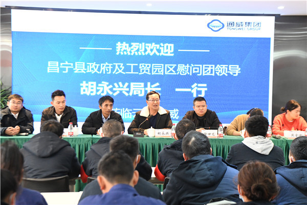 1月18日,昌寧縣工信局局長胡永興、昌寧園中園主任徐世龍一行蒞臨永祥樂山基地慰問云南通威學員,在春節前夕帶來了黨和政府的關懷和溫暖。永祥股份副總經理兼云南通威總經理杜炳勝,生產組組長楊成及人事組組長周旭熱情接待并進行座談交流。
