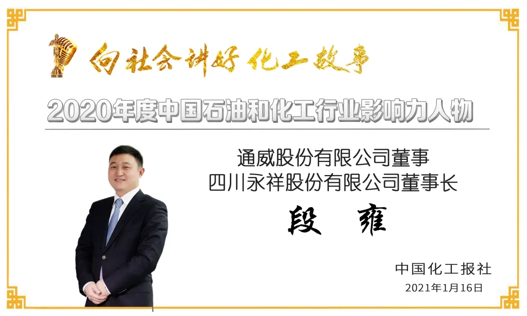 通威股份董事、永祥股份董事長段雍榮獲“2020年度中國石油和化工行業影響力人物”