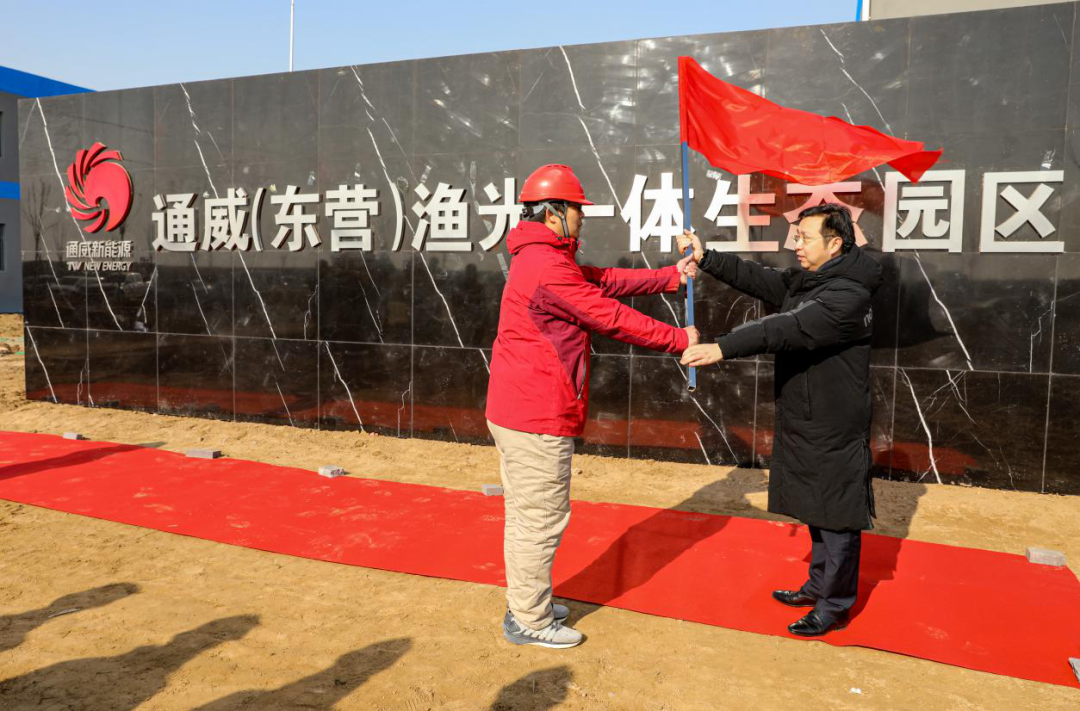 1月11日,為表彰通威東營“漁光一體”項目建設所取得的成績,東營市現代農業示范區管理中心舉行授牌儀式,授予通威東營“漁光一體”生態園區“優秀建設單位”稱號。當天,通威新能源還舉行了“基地管理標化建設”授旗儀式。東營市現代農業示范區管理中心主任王永利、通威能源有限公司執行董事兼總經理邱艾松、通威新能源直屬業務副總經理楊勇等領導出席儀式。