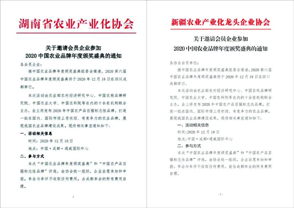 中國要強,農(nóng)業(yè)必須強。為進一步推進我國農(nóng)業(yè)品牌化發(fā)展,全面打贏脫貧攻堅戰(zhàn),全面建成小康社會,2020第六屆中國農(nóng)業(yè)品牌年度頒獎盛典在連續(xù)五屆成功舉辦的基礎(chǔ)上,將于12月18日在成都通威國際中心隆重舉行。屆時,50+政府領(lǐng)導(dǎo)、80+行業(yè)大咖、200+龍頭企業(yè)、800+參會代表將匯聚一堂,以“賦能品牌農(nóng)業(yè) 決勝脫貧攻堅”為主題,聚焦“后脫貧攻堅時代”農(nóng)業(yè)品牌的新作為、新發(fā)展。