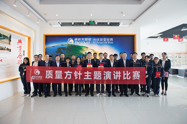 為進一步深入學(xué)習(xí)貫徹通威集團董事局劉漢元主席關(guān)于質(zhì)量方針的重要指示,提高全體員工質(zhì)量意識。11月17日-19日通威太陽能合肥、成都、眉山三地先后舉辦了質(zhì)量方針演講比賽,共計49名選手參加比賽,通威太陽能成都公司總經(jīng)理蕭圣義出席。