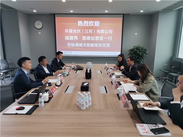 環晟光伏(江蘇)有限公司首席運營官陸建偉一行蒞臨通威太陽能參觀交流