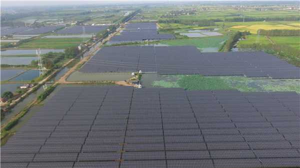 參觀集控室 劉縣長一行參觀了項(xiàng)目光伏區(qū)、升壓站和集控室,項(xiàng)目經(jīng)理就項(xiàng)目規(guī)模、建設(shè)進(jìn)度、節(jié)能減排效果及經(jīng)濟(jì)增收等情況向考察團(tuán)作了詳細(xì)匯報(bào)。通威公安“漁光一體”項(xiàng)目坐落于湖北省荊州市公安縣藕池鎮(zhèn),總投資近3.5億元,占地2200余畝,是目前荊州市最大的光伏電站項(xiàng)目,充分實(shí)現(xiàn)了項(xiàng)目“三增一減”(農(nóng)民增收、財(cái)政增收、企業(yè)增收、節(jié)能減排)的綜合效益。 考察團(tuán)一行對通威及項(xiàng)目給予了高度評價(jià)。劉縣長表示,通威公安項(xiàng)目團(tuán)隊(duì)在面對2020年疫情、洪災(zāi)等重大災(zāi)害的影響下,努力攻堅(jiān)克難,加快企業(yè)自救及復(fù)工復(fù)產(chǎn),為當(dāng)?shù)亟?jīng)濟(jì)復(fù)蘇起到了極大的示范帶頭作用。同時(shí),希望通威在相關(guān)部門的積極支持下,充分利用漁業(yè)養(yǎng)殖方面的優(yōu)勢,促進(jìn)當(dāng)?shù)貍鹘y(tǒng)養(yǎng)殖模式的提檔升級,引領(lǐng)當(dāng)?shù)亟?jīng)濟(jì)蓬勃發(fā)展。 通威公安縣藕池鎮(zhèn)扁擔(dān)湖100MWp“漁光一體”光伏電站項(xiàng)目