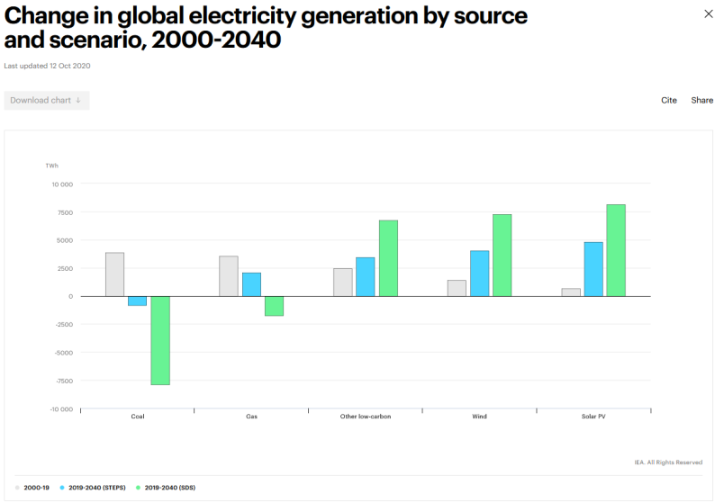 按照國際能源署測算的第一種模型STEPS,2040年年底,太陽能光伏的年發電量為4813TWh,超過了其最為接近的挑戰者——陸上和海上聯合風電,后者的年發電量為4019TWh。在SDS模型中,這兩種資產類別之間的差距在縮小,但是,太陽能仍以每年8135TWh的預期發電量位居榜首。
