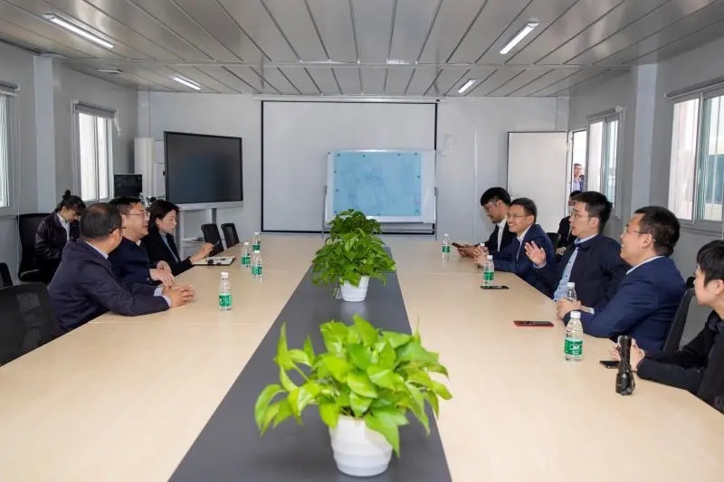 10月22日,金堂縣委書記、成都淮州新城黨工委書記辜學斌調研指導通威太陽能金堂基地項目建設情況,縣委副書記、縣長古建橋,副縣長、金堂工業區管委會主任朱和金陪同。通威股份董事長謝毅熱情接待并座談。