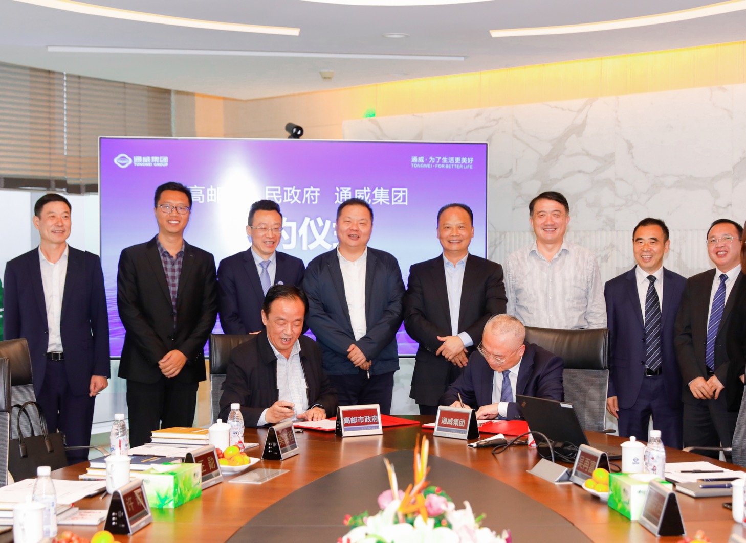 10月12日,江蘇省高郵市委副書記、市長張利一行蒞臨通威考察交流,十一屆全國政協(xié)常委、全國人大代表、通威集團(tuán)董事局劉漢元主席,通威集團(tuán)副總裁胡榮柱,通威股份副總裁王尚文、光伏事業(yè)部總裁陳星宇熱情接待并座談。