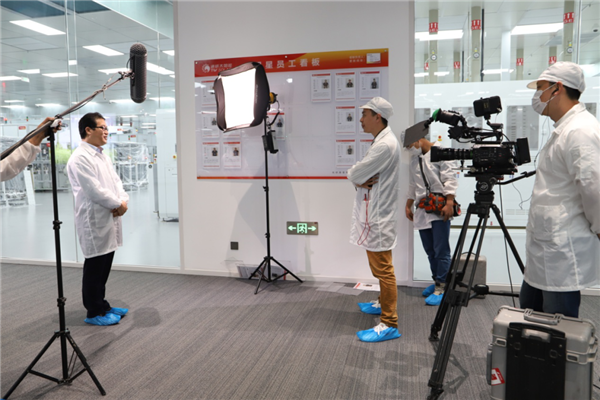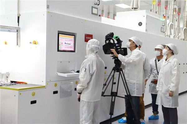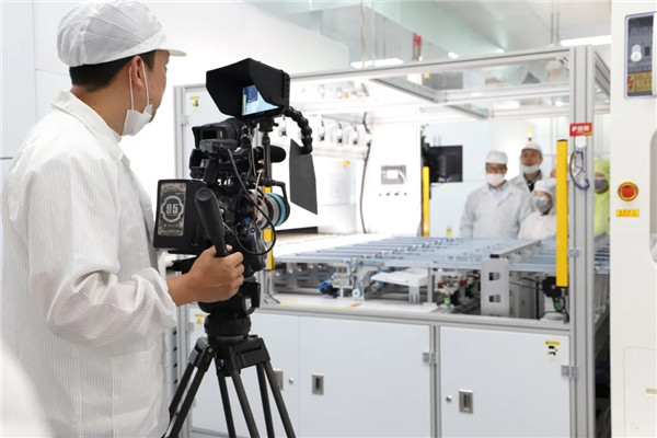 在通威太陽能眉山基地拍攝期間,攝制組走進全球單體規模最大高效晶硅電池生產車間,全程記錄了高效晶硅電池生產過程,以及公司在前瞻性電池技術產線的調試情況。鏡頭前,一支支特殊的機械臂有序揮舞,一輛輛無人駕駛的IGV智能小車往來穿梭,全封閉的全自動無人智能制造生產線高速運轉、有條不紊。