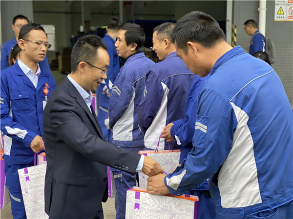 9月22日,在中秋佳節(jié)即將來(lái)臨之際,中共四川永祥股份有限公司黨委委員,中共永祥樹(shù)脂黨支部書(shū)記,永祥股份副總經(jīng)理兼永祥樹(shù)脂總經(jīng)理周宗華深入檢修現(xiàn)場(chǎng),為忙碌在一線的員工提前送去中秋佳節(jié)的祝福和問(wèn)候。