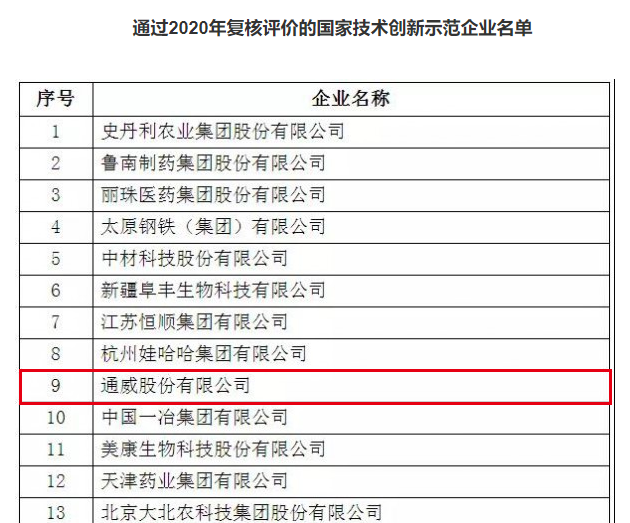 通威榮列工信部“2020國家技術(shù)創(chuàng)新示范企業(yè)”榜單