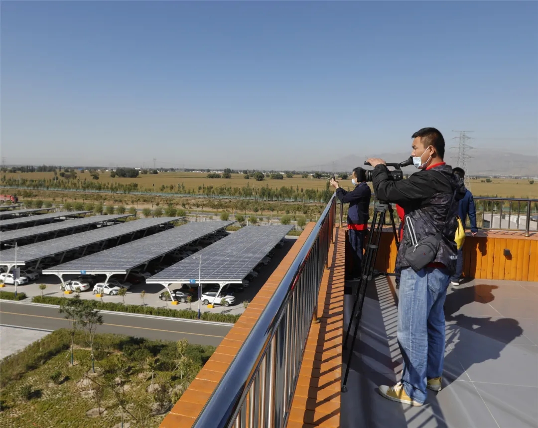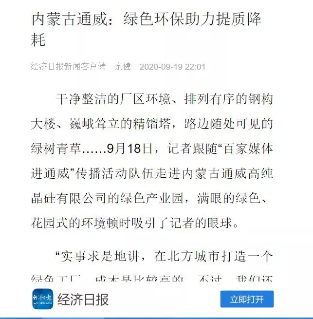 在實地參觀和座談交流后,媒體紛紛通過文字、圖片、新媒體等豐富形式,點贊內蒙古通威高純晶硅發展成績和“塞上江南”花園式廠區打造。