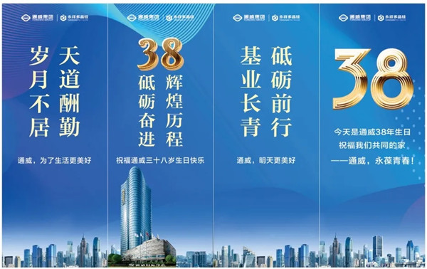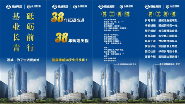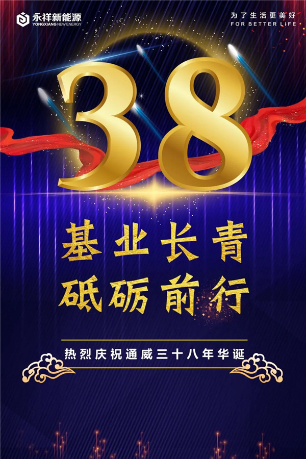 數易春秋,風華正茂;幾載耕耘,碩果累累。值此通威集團38周年生日之際,祝福公司在新的征程中再譜新篇!我們全體通威人,一起為了生活更美好,全力奮斗!