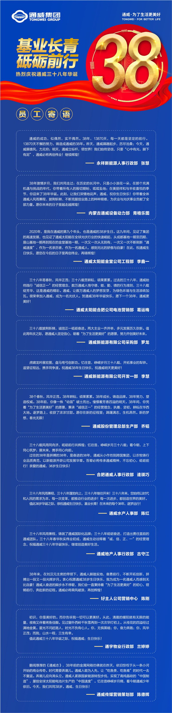 基業長青 砥礪前行!通威各體系祝福通威三十八歲生日快樂!