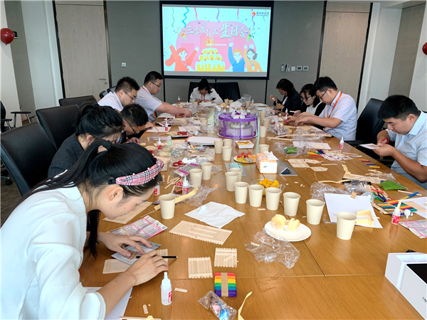 走進季度生日會現場,生日氛圍氣球、美味的下午茶點、精致的生日蛋糕、歡樂活潑的背景音樂,營造出生日的歡樂氛圍。本次生日會為了提升大家的動手能力,緩解工作壓力,開展了雪糕棒手工的創新體驗活動。一根根小小的雪糕棒,在各位壽星的巧手之下重獲生機,通過幾小時的粘合、裁剪、拼接、創新,雪糕棒從平面到立體,五彩斑斕的小房子、層次豐富的大船、靈動可愛的風車和小橋呈現在大家眼前,看到最終的成果,制作過程中的挑戰和困難全都煙消云散,大家臉上都洋溢出開心的喜悅,也收獲了滿滿的成就感。