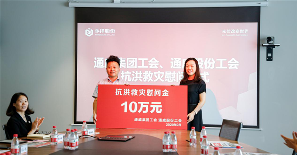 9月8日,通威集團(tuán)工會(huì)及通威股份工會(huì)抗洪救災(zāi)慰問儀式在永祥新能源公司會(huì)議室順利舉行。通威股份董事、永祥股份董事長兼總經(jīng)理段雍,通威集團(tuán)工會(huì)主席兼通威股份工會(huì)主席張紅纓,永祥股份工會(huì)主席龍小龍等出席,雙方工會(huì)代表就永祥災(zāi)后有序復(fù)產(chǎn)進(jìn)行座談交流。