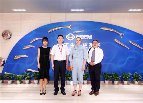 9月8日,芬蘭駐華大使館農(nóng)業(yè)參贊安婷娜蒞臨通威股份管理總部參觀交流,通威股份傳播策劃部部長馮暢全程陪同接待。參觀過程中,安婷娜對(duì)于通威雙主業(yè)的科技成果以及“漁光一體”模式贊不絕口。