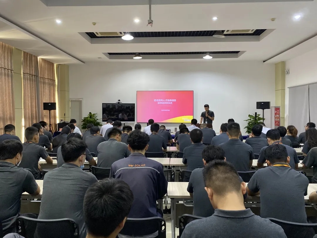 8月25日,通威大學(xué)光伏學(xué)院成功舉辦了技術(shù)序列人才培養(yǎng)項(xiàng)目秋季班開班儀式。合肥、成都兩地技術(shù)序列部門負(fù)責(zé)人代表攜110名秋季班導(dǎo)師與學(xué)員代表出席儀式。