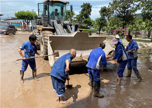 各級政府領導紛紛親臨現場,查看生產受災情況,了解公司的困難和需求,勉勵全員齊心協力克服困難,堅定恢復常態的信心。通威股份董事、永祥股份董事長兼總經理段雍深入永祥樹脂生產一線,視察洪災影響情況,并指導開展洪水過后的處理工作。為盡快恢復常態,各部門、車間安排專人進行受災情況統計,同時用水印相機拍好照片,并統一存檔;打掃屬地衛生、場地清理,淤泥清理后堆至一旁,垃圾統一堆放,留出廠區主干道;被洪水沖垮的公司圍墻和圍欄,拉起了警戒線;辦公樓1-2樓通電通網成功,設立臨時充電點保障通訊;公司駕駛員專人專項負責受損車輛保險;人事行政部對災后的現場、辦公樓、會議室、交接班室、食堂等地進行無死角、全方位的消毒。