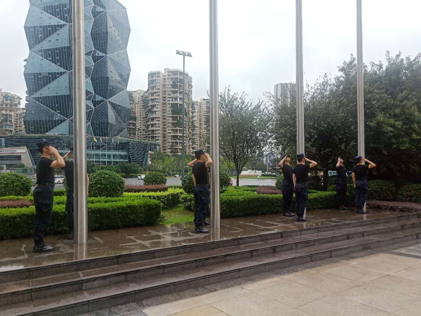 冒雨彩排升旗儀式