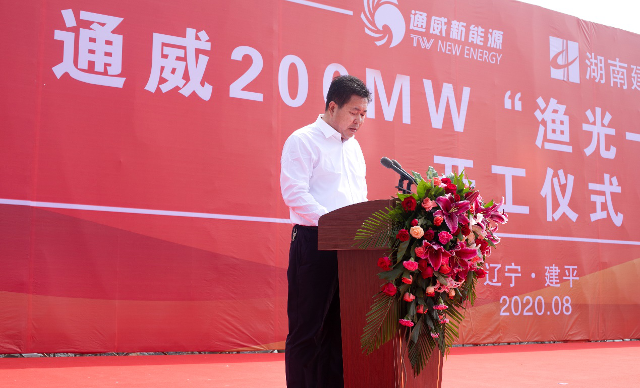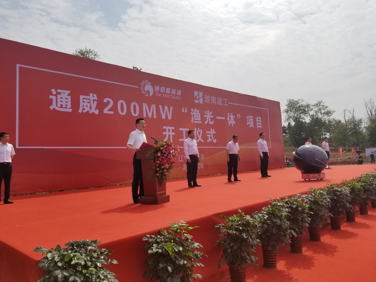 8月15日,通威建平200MW“漁光一體”平價光伏項目開工儀式在遼寧省朝陽市建平縣隆重舉行。遼寧省朝陽市市長謝衛東,朝陽市市委常委、市政府黨組副書記、建平縣委書記牛殿祥,朝陽市市政府秘書長、市政府辦公室主任高樹勝,建平縣委副書記、縣長王文佳,建平縣副縣長張秀偉,通威股份光伏事業部總裁陳星宇,湖南建工建融資產新能源事業部總經理劉文彬以及朝陽市各級政府部門領導、建平縣政府各級部門領導、各鄉鎮代表等共計200余人共同見證。
