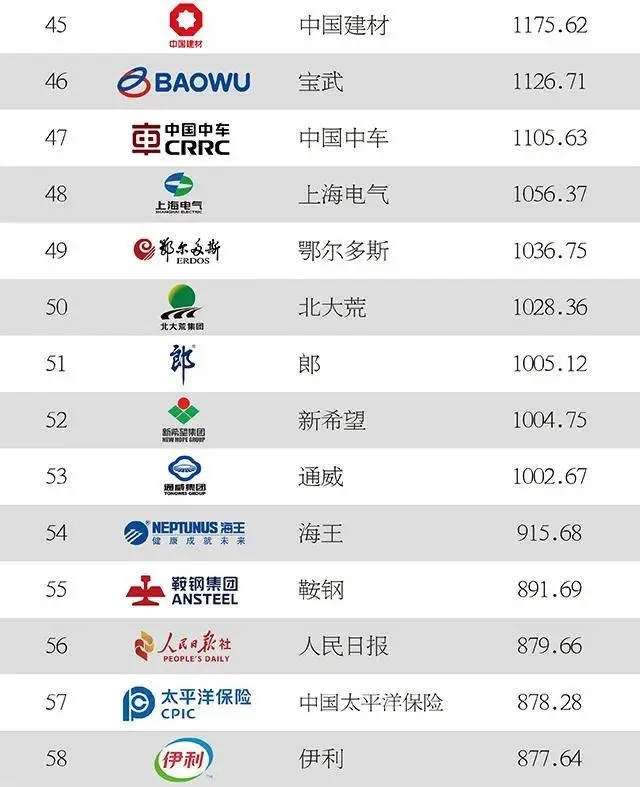 在此次評(píng)估的《中國(guó)500最具價(jià)值品牌》百?gòu)?qiáng)排行榜里,百?gòu)?qiáng)品牌都是具有中國(guó)和世界影響力的品牌,今年的百?gòu)?qiáng)門(mén)檻再次提高,競(jìng)爭(zhēng)愈發(fā)激烈。品牌價(jià)值在4000億以上的品牌有5個(gè);3000-4000億之間的品牌有7個(gè);2000億至3000億之間的品牌有8個(gè);1000億至2000億之間的品牌共有33個(gè)。百?gòu)?qiáng)品牌的平均價(jià)值為1501.45億元,是500強(qiáng)品牌平均價(jià)值493.84億元的3倍。其中,通威以1002.67億元榮列榜單并位居第53位。