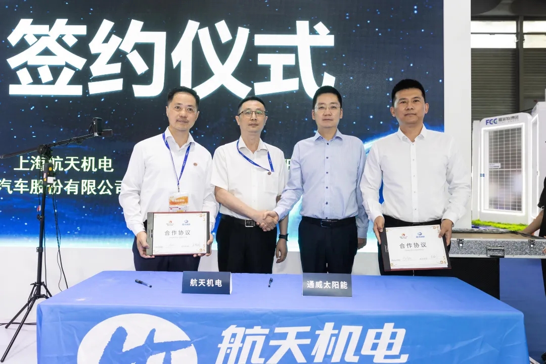 8月9日,第十四屆國際太陽能光伏與智慧能源(上海)展覽會期間,通威太陽能有限公司(簡稱“通威太陽能”)與上海航天汽車機電股份有限公司(簡稱“航天機電”)合作協(xié)議簽約儀式在上海新國際博覽中心順利舉行,通威股份董事長謝毅、航天機電副董事長兼副總經(jīng)理吳昊、航天機電總經(jīng)理奚榮彪、通威太陽能營銷總監(jiān)薛青松共同出席并見證簽約儀式。