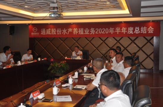 近日,通威股份水產(chǎn)養(yǎng)殖業(yè)務(wù)召開以“凝勢聚力細(xì)耕耘 多措踐行促發(fā)展”為主題的2020半年工作總結(jié)會議,通威股份總裁郭異忠、人力資源部長兼水養(yǎng)殖運營組長李凌峰、原料部長助理兼水產(chǎn)養(yǎng)殖采銷組長潘雪梅、規(guī)模化水產(chǎn)養(yǎng)殖組長兼南京通威總經(jīng)理周儉、水產(chǎn)養(yǎng)殖財務(wù)組長趙仁杰、設(shè)施研究所長梁勤朗、成都種苗總經(jīng)理韓永望及水養(yǎng)殖業(yè)務(wù)各基地負(fù)責(zé)人、職能部門負(fù)責(zé)人、技術(shù)經(jīng)理、養(yǎng)殖組長共計30余人參加。