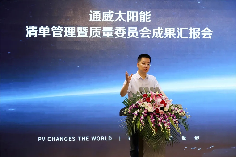 7月14日,通威太陽能清單管理暨質量委員會成果匯報會在成都基地成功舉行。通威股份董事長謝毅出席,通威太陽能成都、合肥、眉山三地全體中高管及部分員工通過現場或視頻連線參加會議。
