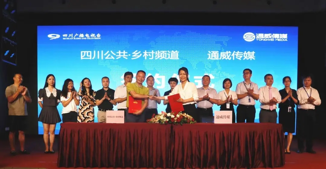 7月13日,四川廣播電視臺公共·鄉村頻道與通威傳媒戰略合作協議簽約儀式在通威國際中心成功舉行。雙方未來將就行業新聞報道、企業品牌宣傳、活動聯袂打造、公共關系構建等方面開展深度、高效合作,整合優勢資源,構筑品牌高地,共同推動主流媒體與龍頭企業的互動共贏。四川廣播電視臺黨委委員、總工程師柳耀輝,通威集團禚玉嬌總裁、集團副總裁黃其剛,四川廣播電視臺公共·鄉村頻道總監張健祥出席簽約儀式。公共·鄉村頻道相關部門負責人、集團行政后勤及傳播團隊管理班子和員工代表參會。