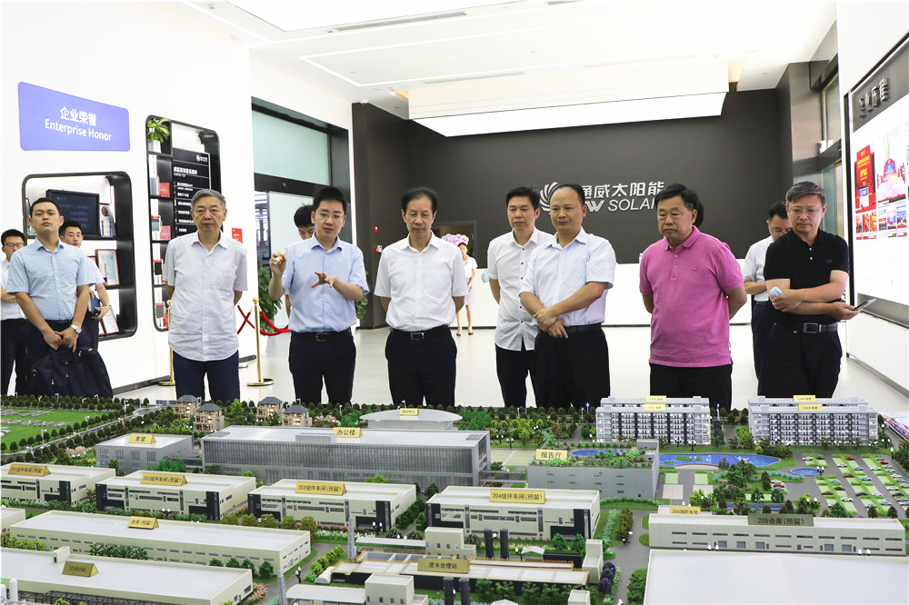 劉漢元主席向陳光志主任一行介紹了中國光伏產業的發展歷程,并表示,在新一輪能源革命背景下,太陽能光伏發電已經成為人類當前及未來新能源發展主要選擇,成為了我國經濟轉型,資源和環境不可持續問題、霧霾問題根治的主要力量。從能源投入產出來看,制造光伏發電的系統能源消耗平均在建成以后6個月收回。光伏發電系統的設計壽命是25年,實際工作壽命可以達到40-50年,甚至更長時間。制造光伏發電系統過程當中消耗一度電會在它的生命周期里面返回50度以上的電。從發電成本來看,過去十年時間,光伏發電系統裝機成本降到了原來的十分之一,且隨著技術的不斷進度,成本還將進一步降低,成為各種發電方式當中最低成本、最少消耗、最少環境代價的發電生產方式。劉主席表示,以光伏為代表的可再生能源必將成為未來能源主角,通威也將不遺余力,堅定不移推動光伏產業發展,為治蜀興川再上新的臺階,為子孫后代留住綠水青山、白云藍天貢獻更多通威力量。
