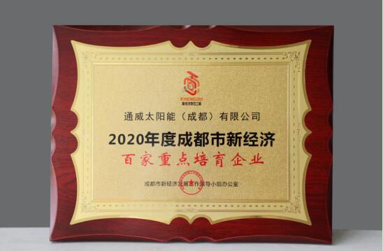 通威太陽能成都公司榮獲2020年度成都市新經濟百家重點培育企業