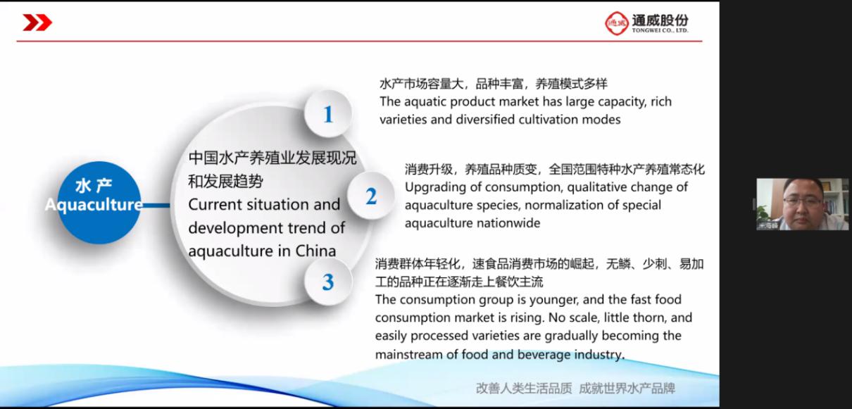 6月22日,由德國農業協會(DLG)主辦的ETC環球水產論壇如期召開,來自德國、丹麥、中國、泰國等國家的水產行業專家及技術精英代表全程參與,通過網絡連線方式分享水產養殖先進管理經驗及未來發展趨勢。通威股份水產研究所所長米海峰博士受邀出席并作主題分享。