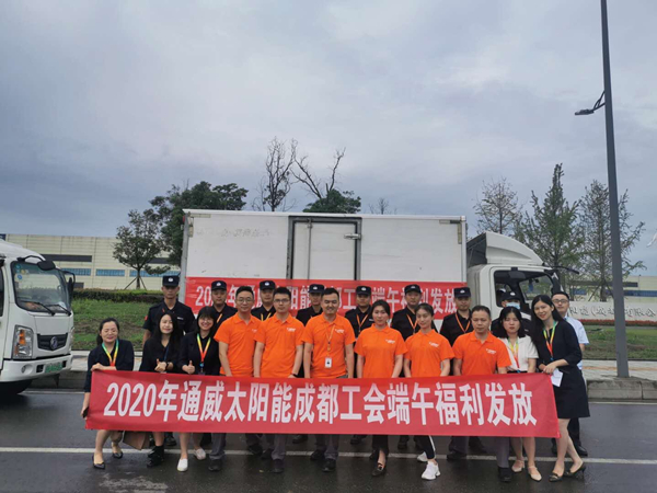 端午福利發(fā)放車隊進入通威太陽能成都基地園區(qū)
