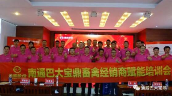 6月18日上午,以“產(chǎn)品致勝·模式引領(lǐng)·服務(wù)增效·價(jià)值共贏”為主題的巴大寶鼎畜禽經(jīng)銷商賦能培訓(xùn)會在華東二區(qū)南通巴大順利召開。通威股份華東二區(qū)總裁柯善強(qiáng)、通威股份畜禽研究所片區(qū)技術(shù)總監(jiān)李鑫、巴大寶鼎總經(jīng)理黃建國以及來自上海、泰州和如東等地的意向經(jīng)銷商出席會議。