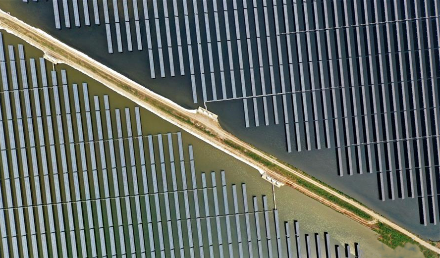 圖為6月14日拍攝的通威唐山“漁光一體”現代漁業產業園。新華社記者 牟宇攝