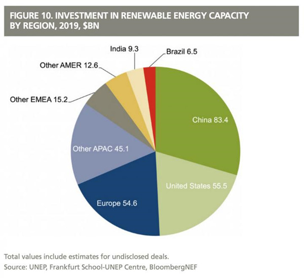 聯合國環境規劃署(UNEP),法蘭克福學校UNEP合作中心和BNEF聯合發布的2020年全球可再生能源投資趨勢報告分析了2019年的投資趨勢以及清潔能源國家和企業在下一個十年中所作的承諾。