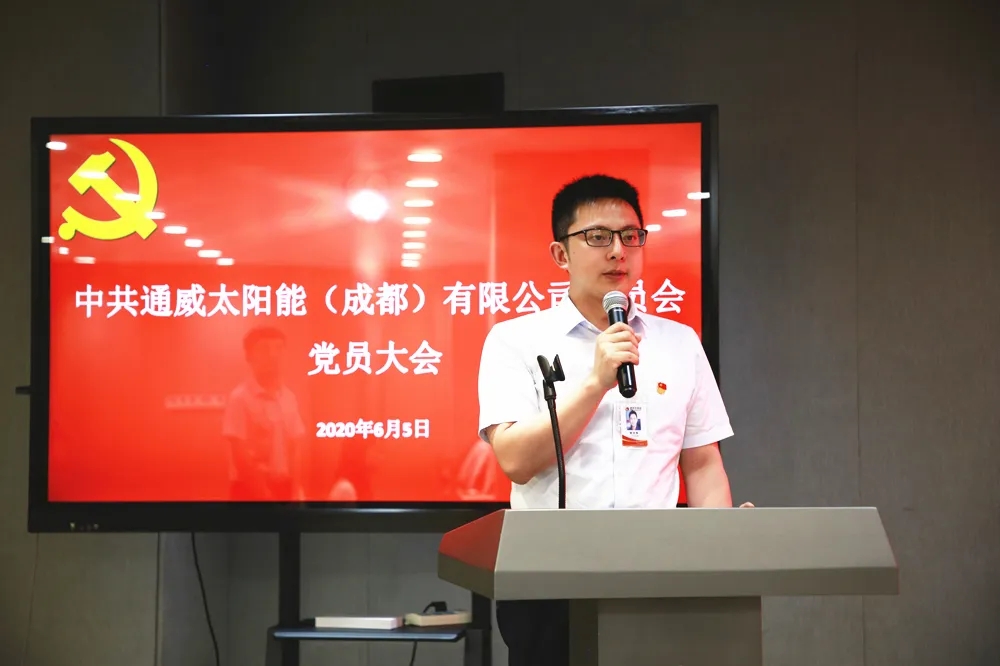 會上,楊文棟書記代表第一屆委員會講話,他表示通威太陽能成都公司黨委的成立,標志著公司黨工共建工作將開啟全新征程。作為通威太陽能成都公司黨委主要負責(zé)人,他將認真履行第一責(zé)任人的職責(zé),在未來的黨建工作中,全體黨員干部要做到三個創(chuàng)新。一是要創(chuàng)新黨委工作,黨代表著廣大人民群眾的利益,要堅持從群眾中來,到群眾中去;二是要創(chuàng)新工作形式,以調(diào)研、問卷、座談等多種形式,深入一線傾聽員工的訴求,把員工想要表達的心聲帶回黨委,帶到公司高層。三是創(chuàng)新活動,通過黨委辦公室充實活動內(nèi)容,打造豐富多樣的“紅色聚能家”,把員工的心聲落到實處,同時,全體黨員同志也要積極發(fā)揮模范帶頭作用。