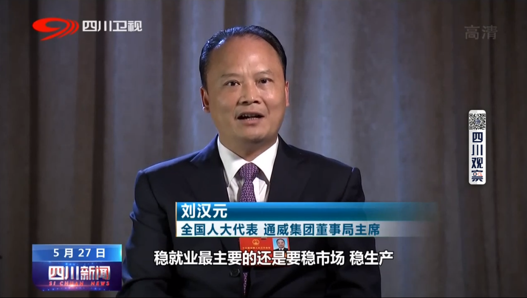 5月27日,四川新聞《兩會云訪談》欄目推出“留得青山 贏得未來川企掌門人有話說”特別報道,劉漢元主席作為出席全國兩會的企業家代表,特邀做客欄目。今年兩會期間,習近平總書記強調,要堅持用全面、辯證、長遠的眼光分析當前經濟形勢,努力在危機中育新機、于變局中開新局。今年《政府工作報告》也提及了“六穩”、“六保”。其中,穩就業、保就業都放在了第一位。而在“消費”和“外貿”面臨下行風險的時候,作為民企佼佼者的通威,在新能源項目投資上的持續發力也引起了媒體的廣泛關注。