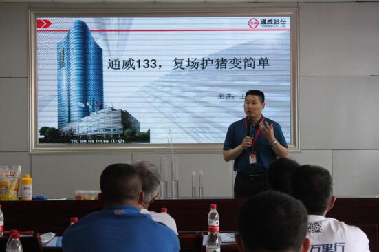 同時(shí),王總就“非洲豬瘟對行業(yè)的影響”、“無抗產(chǎn)品”以及“通威護(hù)場133模式”等話題進(jìn)行了專題分享,并表示,蓉崍通威將攜手通威三新藥業(yè)共同實(shí)現(xiàn)生物防控落地和飼養(yǎng)保健配套,全面幫助經(jīng)銷商建養(yǎng)殖基地,為客戶進(jìn)一步樹立質(zhì)量和養(yǎng)殖信心!