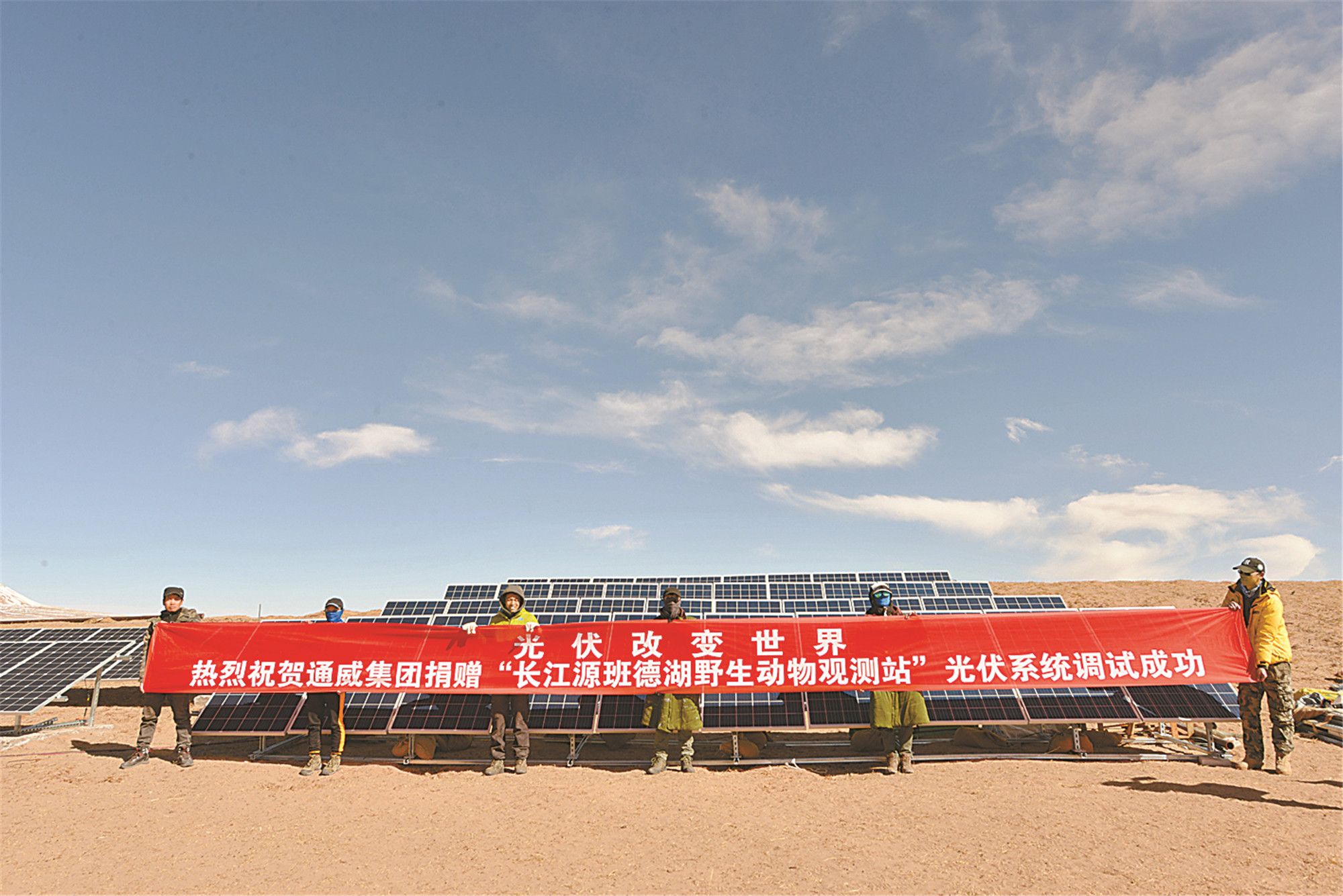 2019年,通威集團捐贈“長江源班德湖野生動物觀測站”光伏系統調試成功